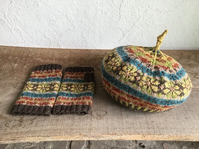 キットは他に、ベストのサイズアップも可能な余裕の糸量とPETALベストの編み図とPETALパターンのベレーとハンドウォーマーの編み図を加えたキットを用意しました。